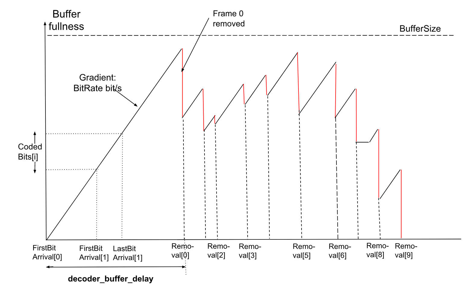 If br_buffer_removal_time[ i ] is signaled, it shall have a value greater or equal than the equivalent value that would have been assigned if the decoder model was decoding frames in the resource availability mode.
